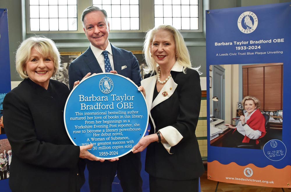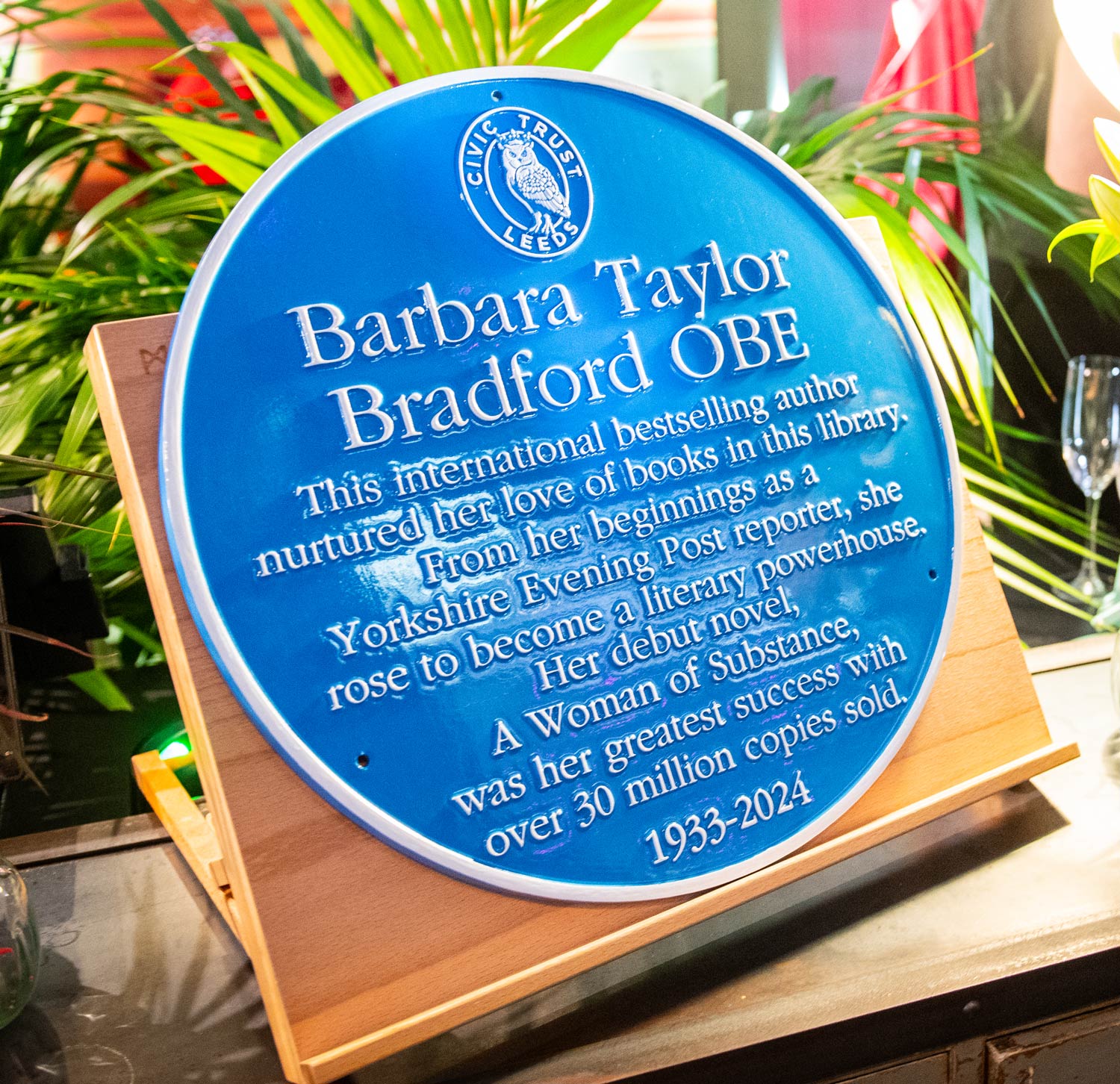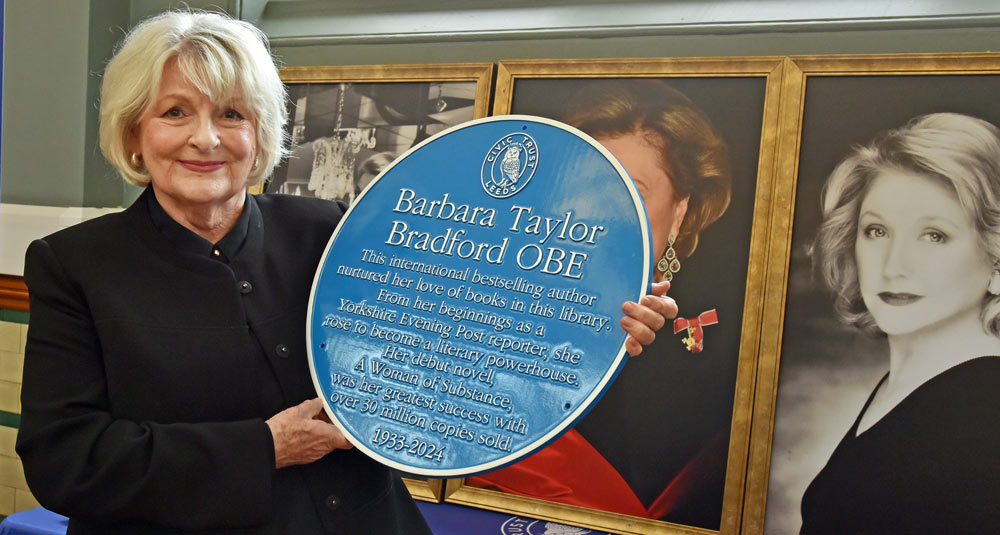 Leeds Civic Trust is delighted to unveil its 207th blue plaque, celebrating the life and remarkable achievements of Barbara Taylor Bradford OBE, the Leeds-born author whose international bestselling novels have earned her a place among the most influential British writers of the 20th and 21st centuries.