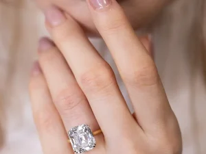 Actress Elizabeth Taylor was known for her taste in luxurious gems, and her third husband, the theatre and film producer Mike Todd, went big! Todd proposed with a 29.4 carat emerald cut diamond ring, a stone so large that Taylor referred to it as her “ice skating rink”.